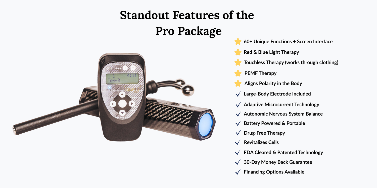 The Tennant BioModulator® Pro is a Premium FDA-accepted handheld medical device designed to relieve that pain you just can’t seem to eliminate. It stimulates your cells from the inside out with our patented microcurrent frequency sets for lasting support when you need it most. The Tennant BioModulator® Pro is our most advanced Premium FDA-accepted handheld medical device to finally relieve your chronic or acute pain. Used by thousands, the Pro model offers clinic-level frequency options to stimulate your cells from the inside out for lasting support when you need it most.